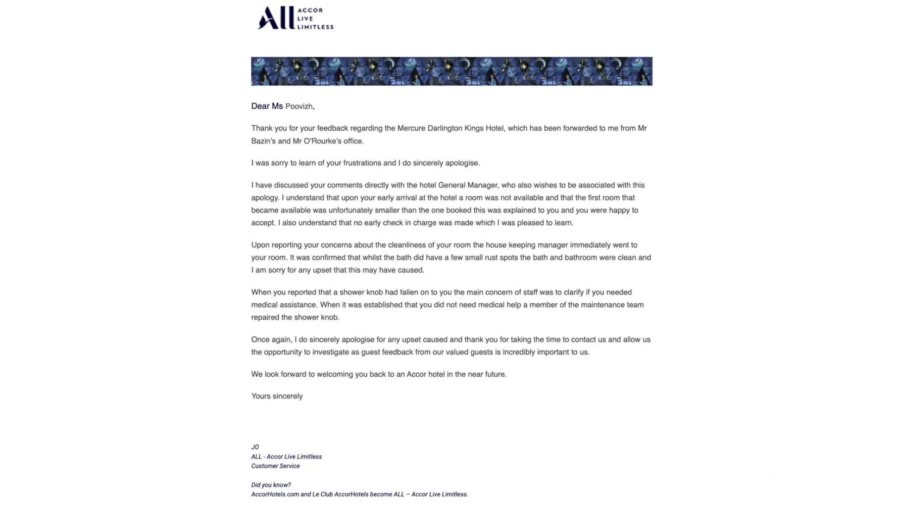 As a long standing user of Ibis in the UK and France, I am not sure I want to continue my membership and will look elsewhere due to this lack of customer care: