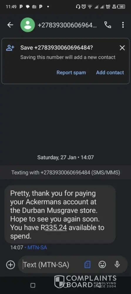 - Ackermans's complaint resolution process is inadequate and ineffective. The support team lacks customer service skills, training, and resources, resulting in only 0% of 2 complaints being resolved.