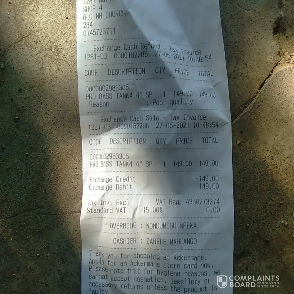 I'm very disappointed about Ackermans I bought phone during lock down last year May 2020 then I returned the phone because it was not charging they keep the phone at Promenade for about 7 weeks then I received the call to pick up phone but unfortunately they didn't fixed the phone they say the problem the pone is having scratche but the problem of the phone is not charging. I bought another phone I keep it for only 2 months its also not charging and I don't want to waist my time to return it also. Now I'm planning to pay Ackermans until I finished balance I'm sick and tired of their stories and closed the account.
