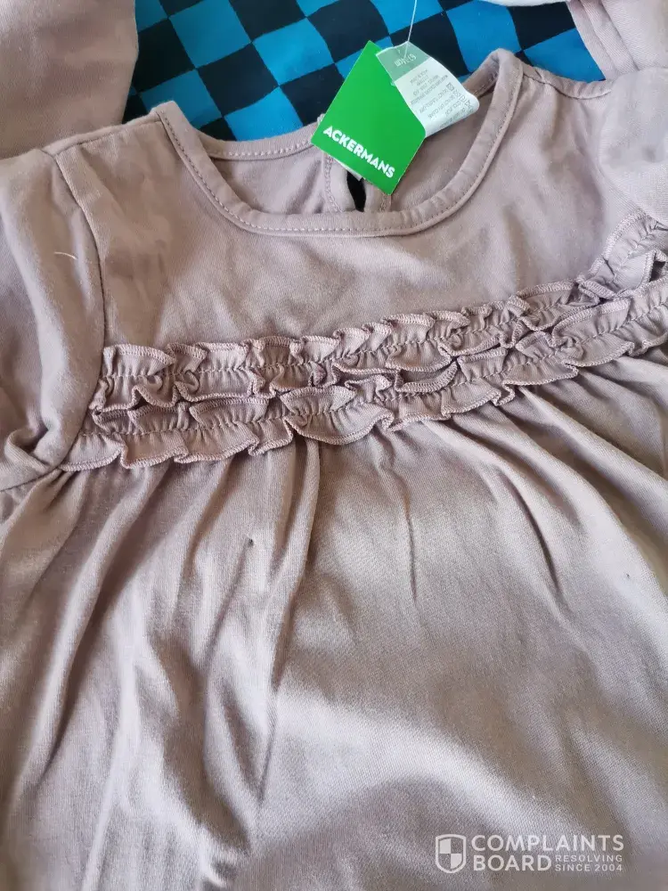 Good day I love your range if baby clothes however will stop shopping here as your items all have holes on them from the magnetuc tags with pins you attach to the garments. I don't know why these pins are nt put in seams instead of the front of the garments. Such incompetence of you fuys side damaging beautiful items and charging me full price for rejects you create! I am considering closing my account with ackermans and shopping elsewhere.