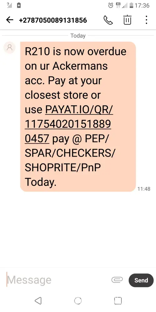 Good day I have been paying my accounts since june via eft my references. Where give as d raletjena paying r270 every month but no one seems to get the pop so I send the proof to gretchen and. To accounts tenacity email still no one cares to call. And advise they have butbi get calls from the rude staff demanding. Money while I pay every month this so so irritating I pay why don't they do their job goodness can someone please help the staff really u are all liars u asked. Me. To emil. Do then u never reply I can't wait to close my accountwith akermans u don't even try to search for. My payment really sis
