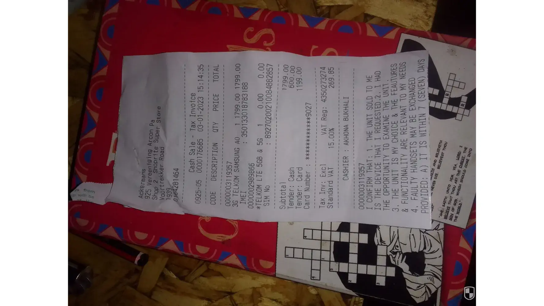 Somebody bought anew phone mobicel epic on the [protected] at palms spring mall. And she was given a till slip with terms and conditions. And it said it is returned with original packing, accessories and pop. So I did not like the phone I went this morning to orange farmmall to exchange it with another phone and was told it cannot be done. This is really [censored] as what ever they told me was ment to be on the slip. Iam really not happy with ackermas service. I need answer now as if you dont assist. Iam really taking this to ombudsman