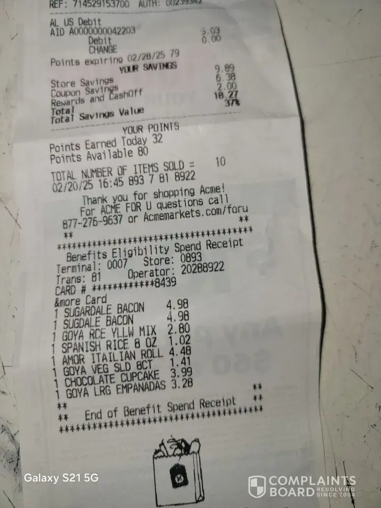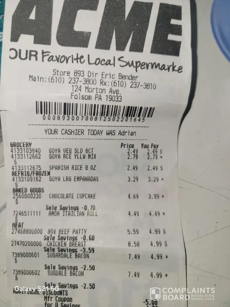 After purchasing $30 worth of groceries I decided to pick up some cigarettes too. I average trips to this Acme 3x weekly and spend about $5-600 per month.