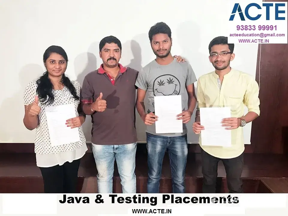 I have completed my core and advanced java training at acte in chennai. I found the session too practical and it helped me to a lot to enhance my development skill set. Trainers at acte let you work on real-time scenarios, which are very useful to acquire deep knowledge on development platform. However, training sessions are very interactive yet personalized. Thanks to acte for the excellent support. Staff were friendly and helpful at all times, you will feel like home when you are there. Place is always clean and tid. A great place for learning java and to devolop a career... Especially freshers... Assured placement at good companies.. Good forum for freshers to devolop skill and get placements... Thanks to acte institute in velachery. Acte is an excellent institute for java in chennai. My brother suggested me to join here. I am happy with the training provided and placements.