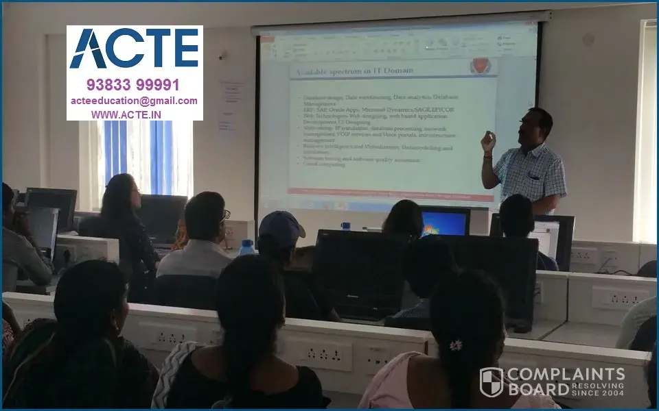 ACTE Fraudulent Training Institute: Don’t believe this training institute, I am sure all the good reviews here are fake. They get the whole money for the training from the students, saying that we need to pay the trainer after then we shall allot the batch. But they don’t and they cheat us. Bunch of liars from the bottom to the top in this institute, I meant all the branches of ACTE.