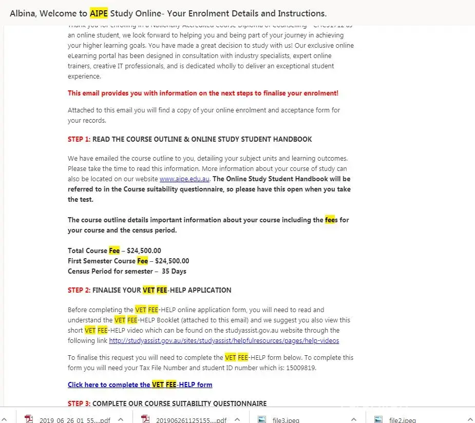 I have not even started the course and the institution went into liquidation. They still charged me $19K in VET fees connected to my TAX