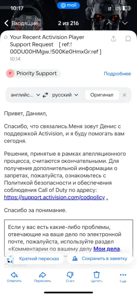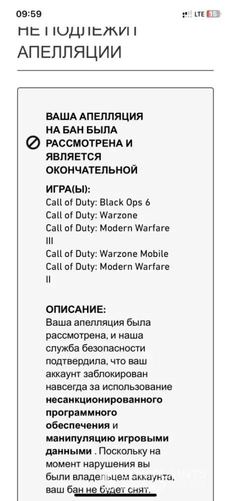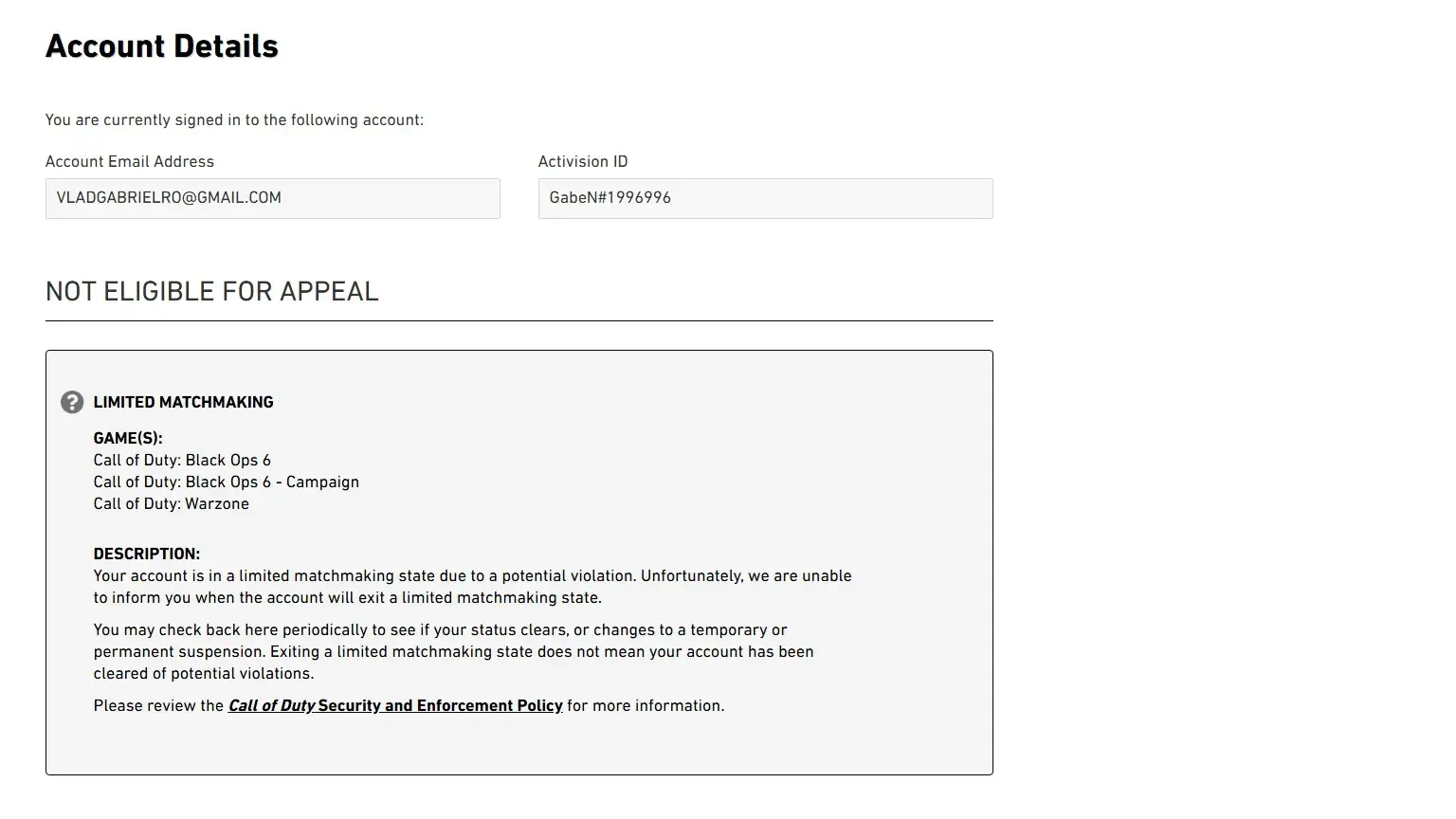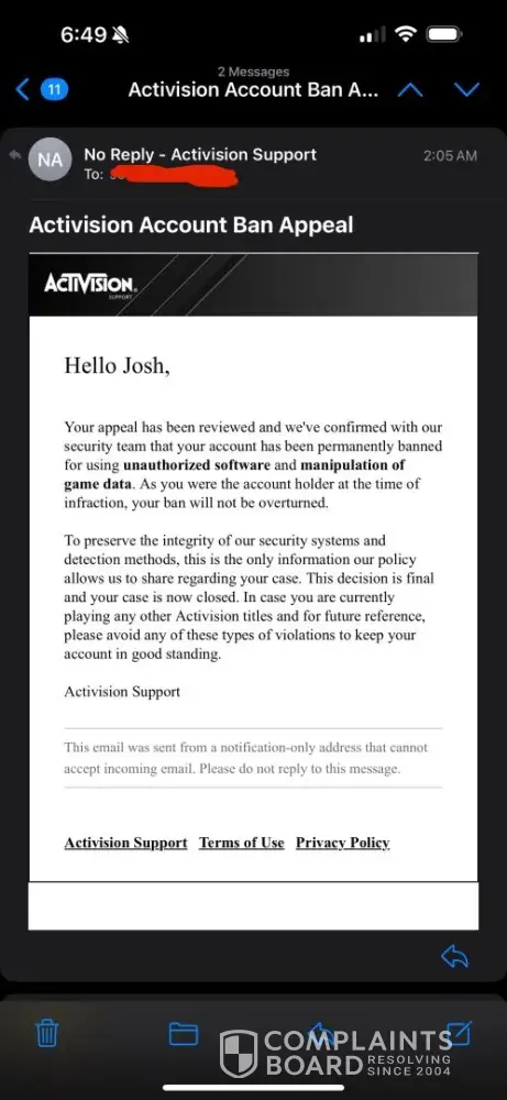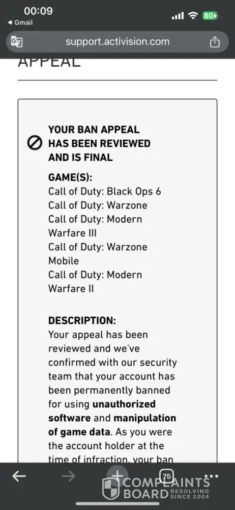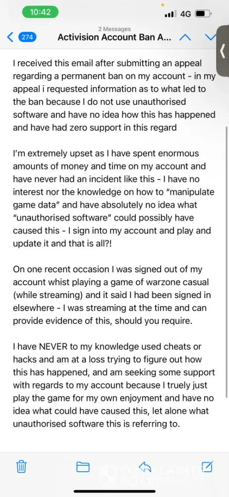 This ban has unfairly restricted my access to a game that I have invested both time and money in. It has also negatively impacted my gaming experience and trust in Activision’s player support process.