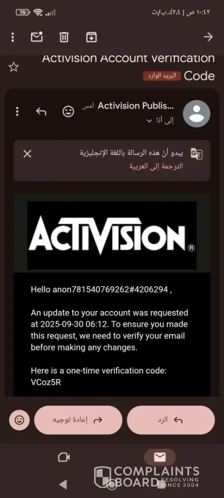 لقد ادخلت بياناتي ØØ³Ø§Ø¨ call of duty ÙÙŠ ØµÙØØ© Ø§ÙƒØªÙØ¬Ù† وقامو بإختراق ØØ³Ø§Ø¨ÙŠ Activision لانها ØµÙØØ© مشبوهة وغير رسمية والآن لايمكنني الدخول من Ø§Ù„ØØ³Ø§Ø¨ الا عن طريق Ùيسبوك وعندما اقوم بطلب تغييركلمة مرور لا يصل الي عبر الايميل الخاص بي [protected]@gmail.com