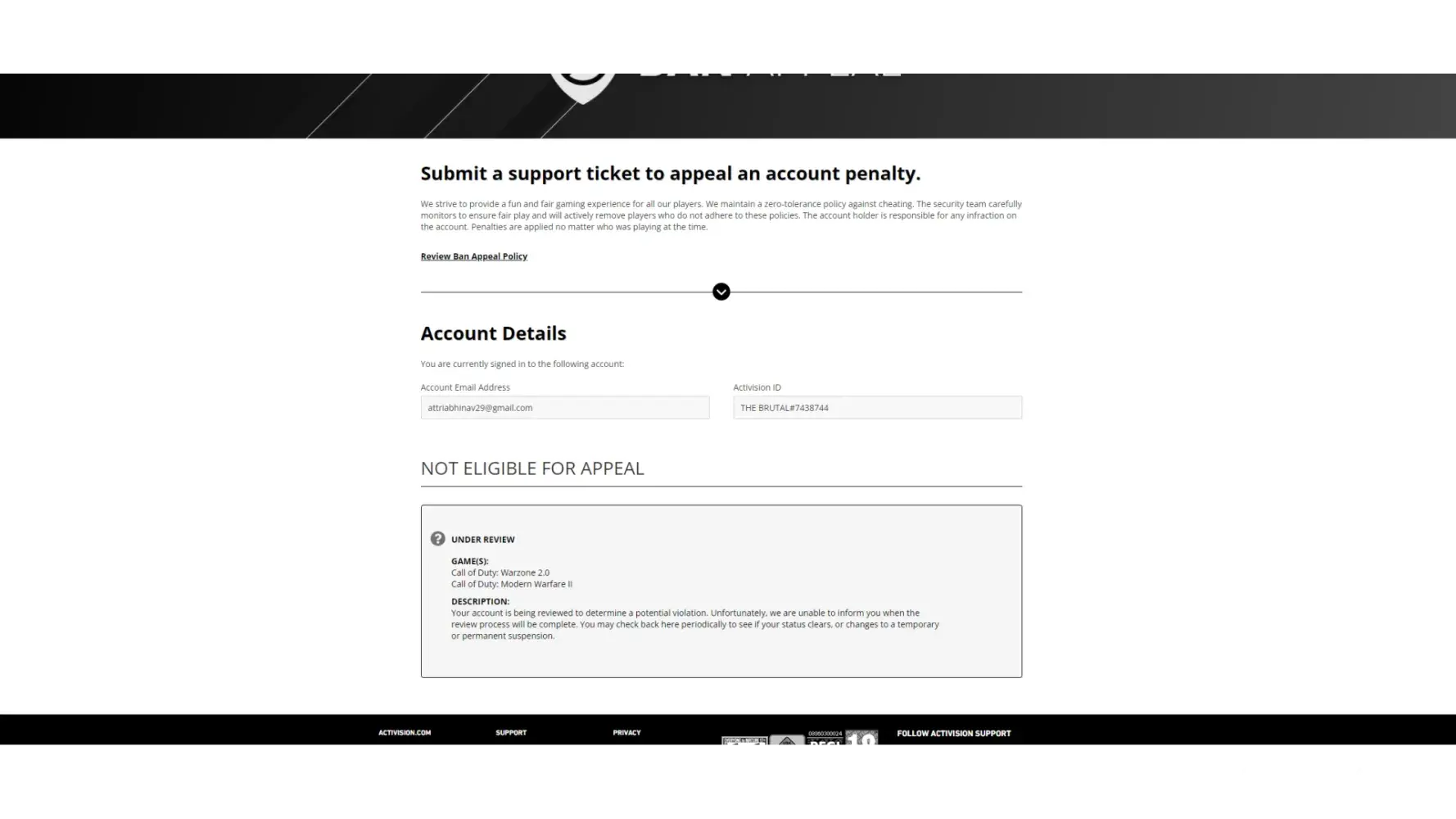 Banned for literally no reason. Activision have done false bans several times but they never seem to learn and have an automated ban and appeal system that customer services can't see? Seems like an oversigh tor a lie to me.