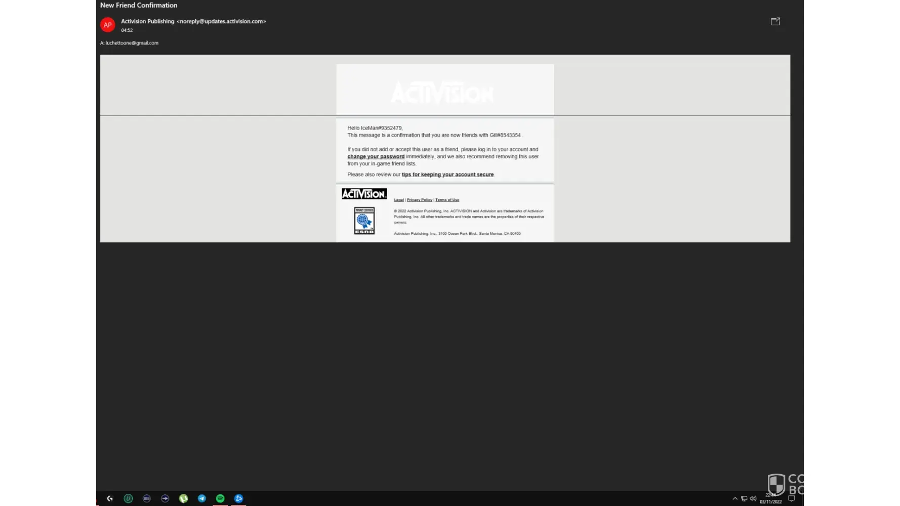 my email for this complaint is under onielwaite@gmail.com but the email my account is associated with is onielwaite@aol.com. So regarding my account please email or message on onielwaite@aol.com not the gmail as again my Activision account is linked to the aol.com email