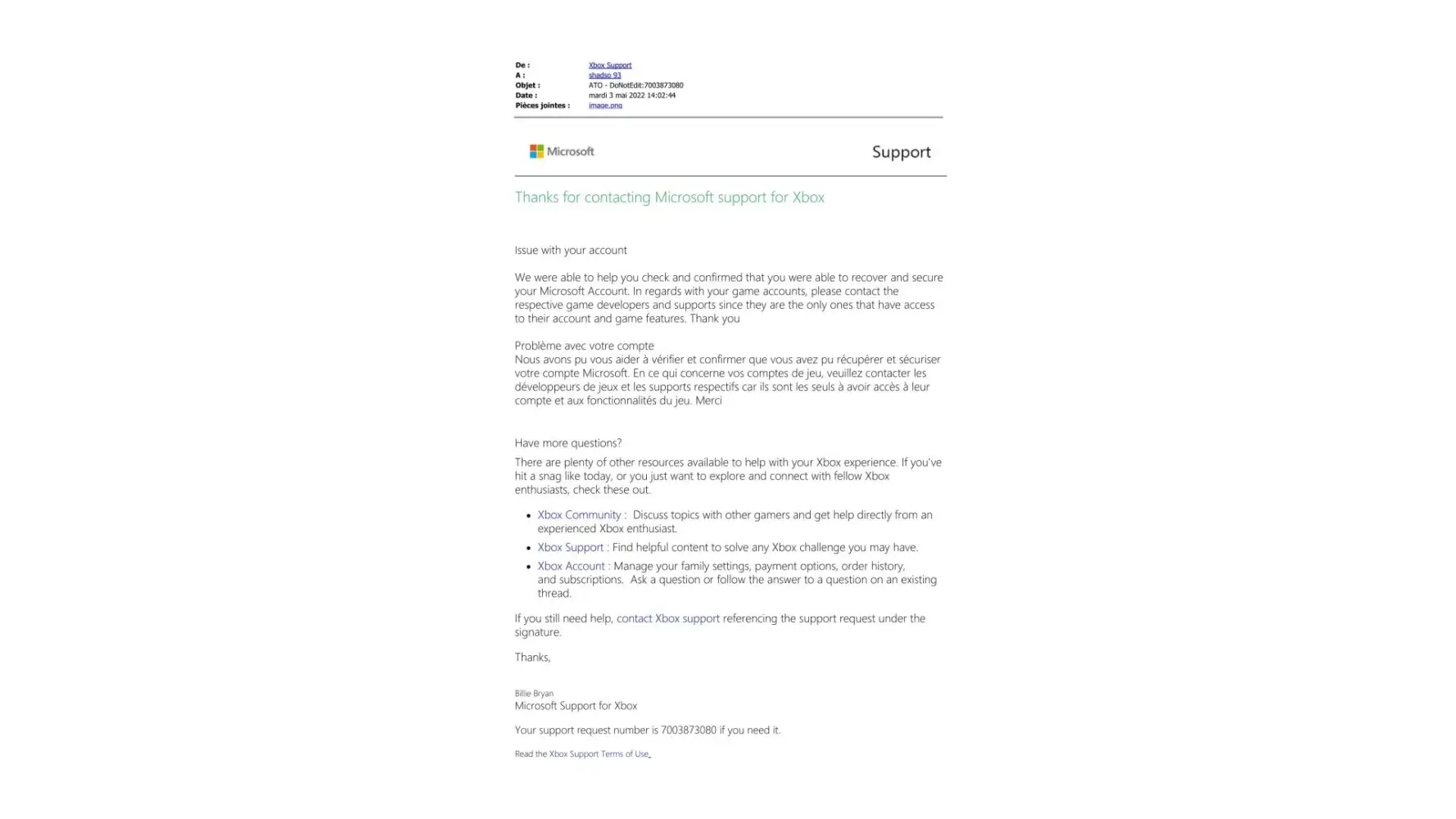 Vous trouverez ci-joint la preuve que mon compte Microsoft a bien été piraté.