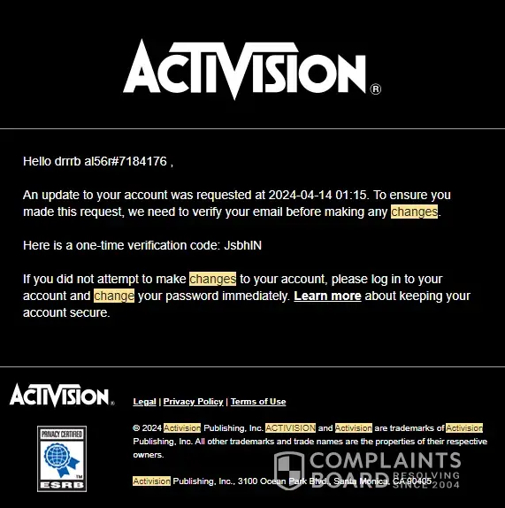Compromised activision account