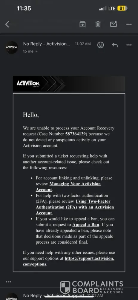 Activision support case: [protected]