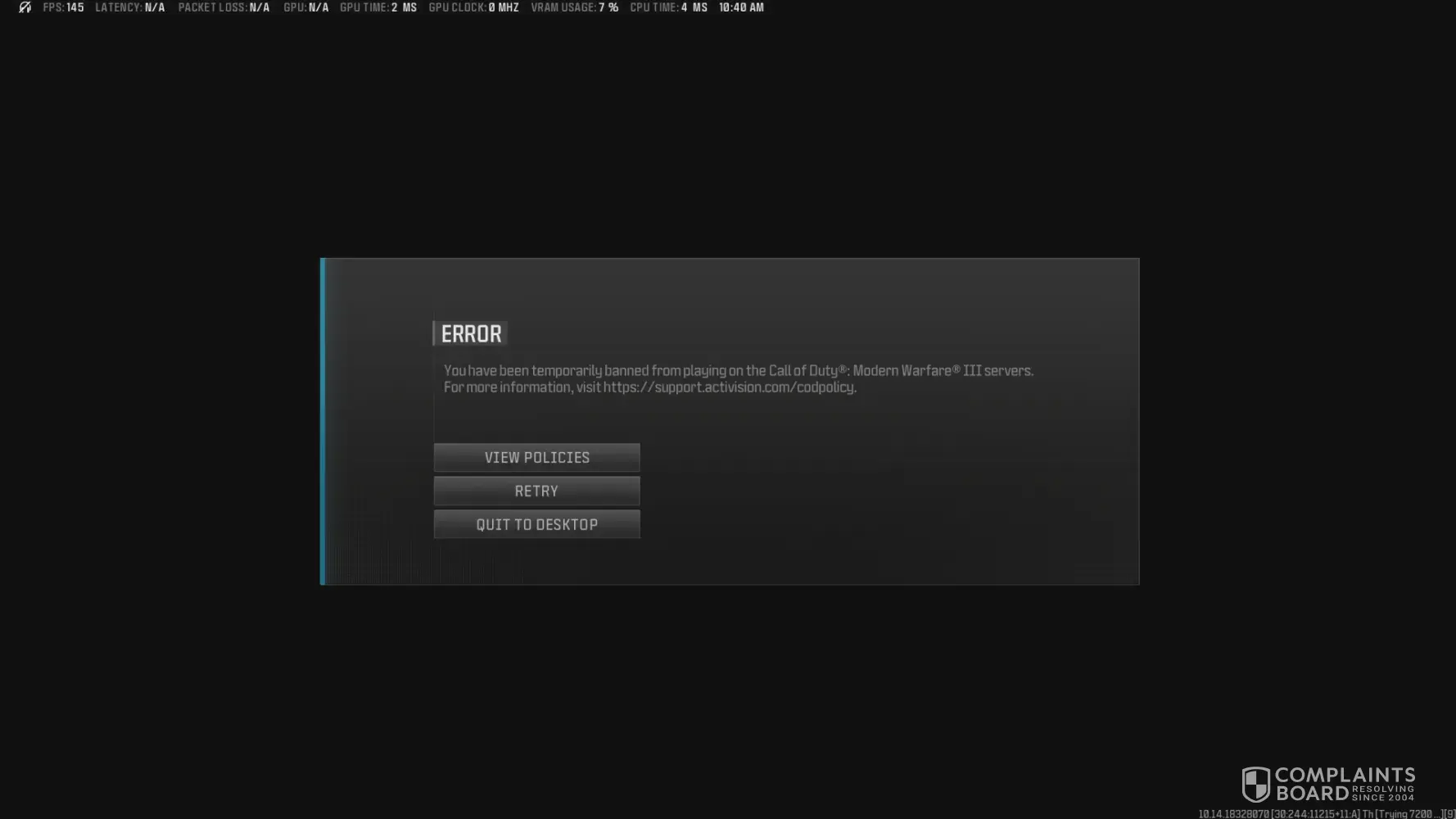 Read full complaint and 1 commentWrongful ban on call of duty