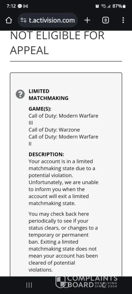 As someone who is been playing the call of duty series since i was a child and played mw1 mw2 i never in my life got the limited matchmaking status, like it’s an indirect way of banning it says that it limits your matchmaking but i wait so long to get in match and every match is full of hackers, as someone who never cheated a single time in my life i find it unfair to get this treatment because i am better than the casuals, like isn’t it against the law to get such treatments when i am spending money on your game ? I got no software i got nothing that merits a ban yet i got it only because someone i killed in a match before said he is hacking spam reports him and i thought it was nothing to only get actually shadow banne 2 hours later, it’s funny yet sad i was hyped about buying black ops 6 but now it’s all going downhill for me.