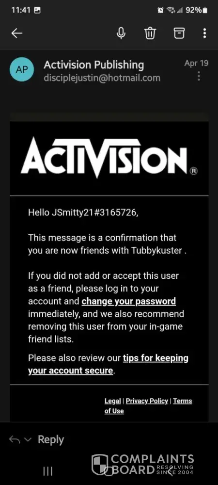 Email associated with Activision: [protected]@gmail.com
