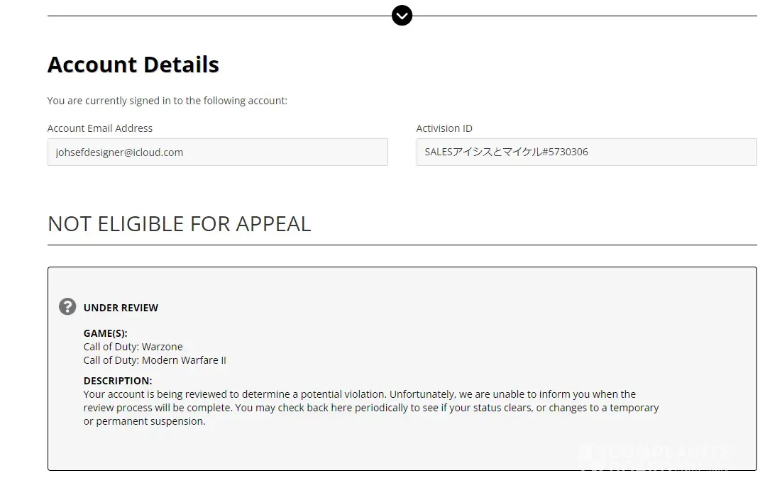 This all began on Friday the 25th august when I received an email from Activision to say my account Poppadom Trims#6840931 had been linked to a 'Battle Account' Teqefagu#2724. I didn't immediately do anything but tried to log on to Call of Duty MW2 on saturday the 26th and couldn't, seeing instead a message telling me I was banned. My next step was to log onto Activision and try to 'unlink' this Battle Account, it's a two-step authentication process which I seemed to make a mess off and ended up raising this account recovery process. I then subsequently raised a request to unban my account which I received what looks very much like an automated reply to say that the ban is upheld and permanent.