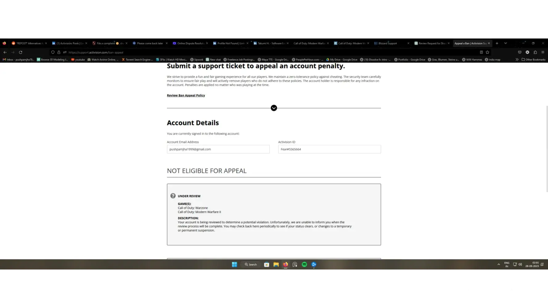Thank you for your attention, though I must admit my gratitude is tainted by exasperation. I look forward, albeit with a weary heart, to a prompt resolution and the opportunity to continue playing Call of Duty: Modern Warfare 2023 without the shackles of this infuriating ban.