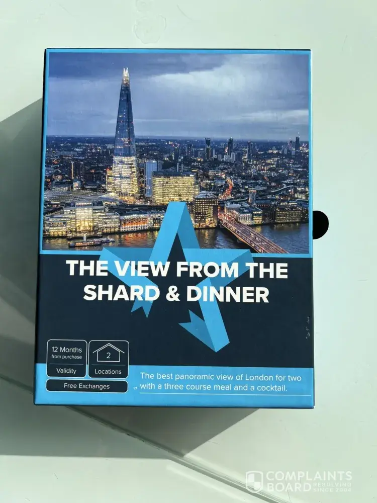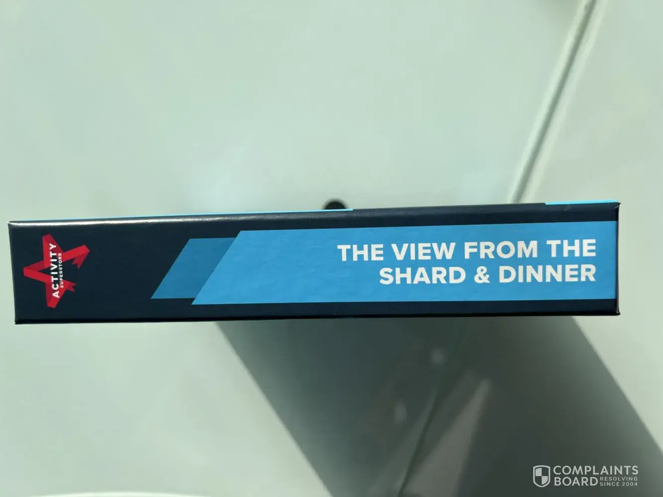 The dinner is at the other location not at the Shard and I am very disappointed to find out from my daughter after I gave her as Christmas present.