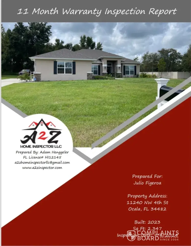 Adams Homes – Ocala, FL Our experience with Adams Homes has been extremely disappointing, and at this point, deeply concerning. It has now been over 14 months since A2Z Home Inspector LLC submitted our 11‑month inspection report on September 30, 2024 for our home at Ocala (Dorchester Estates). Despite repeated follow‑ups, only three items from that...