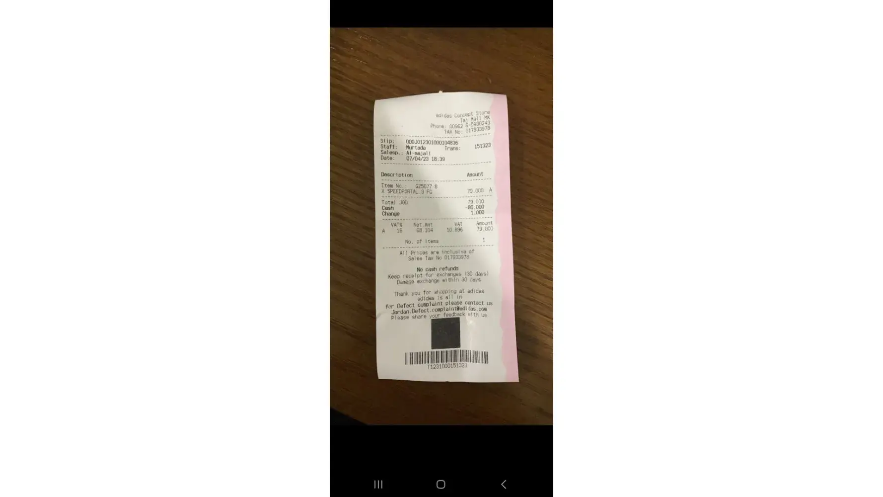 I purchased a pair of shoes from Adidas showroom.