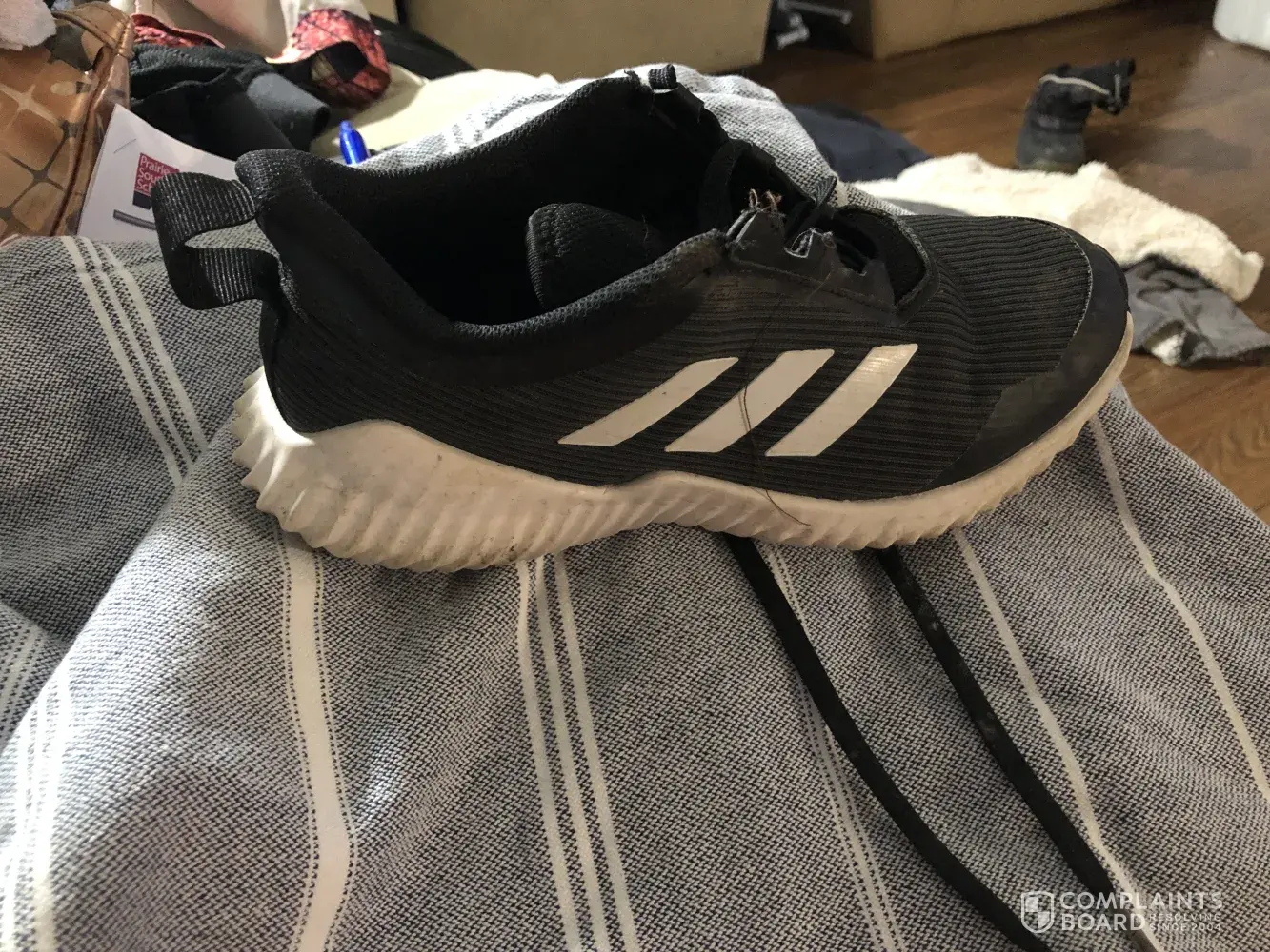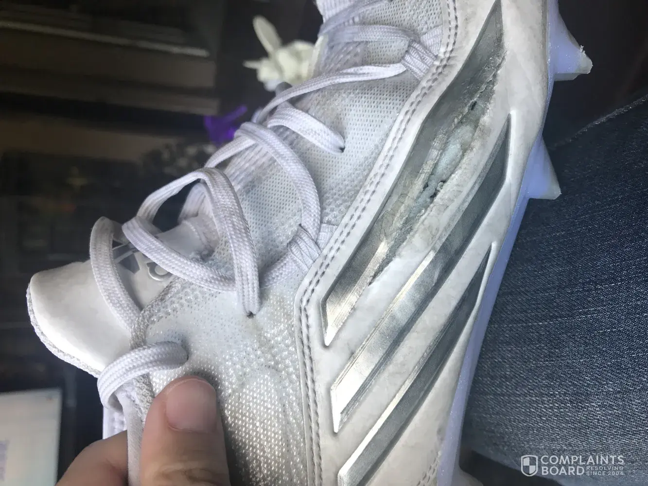 Bought my son a pair of white adidas football cleats, quick frame tech fit size 13 shoes he only wore them for 3 games the 3 stripes on the outside of the shoe blew out. Highly disappointed as we have 4 more games to go and now he risks injury as the shoes are faulty. We usually love adidas and even hate to put in the complaint. Melanie Fisher [protected]