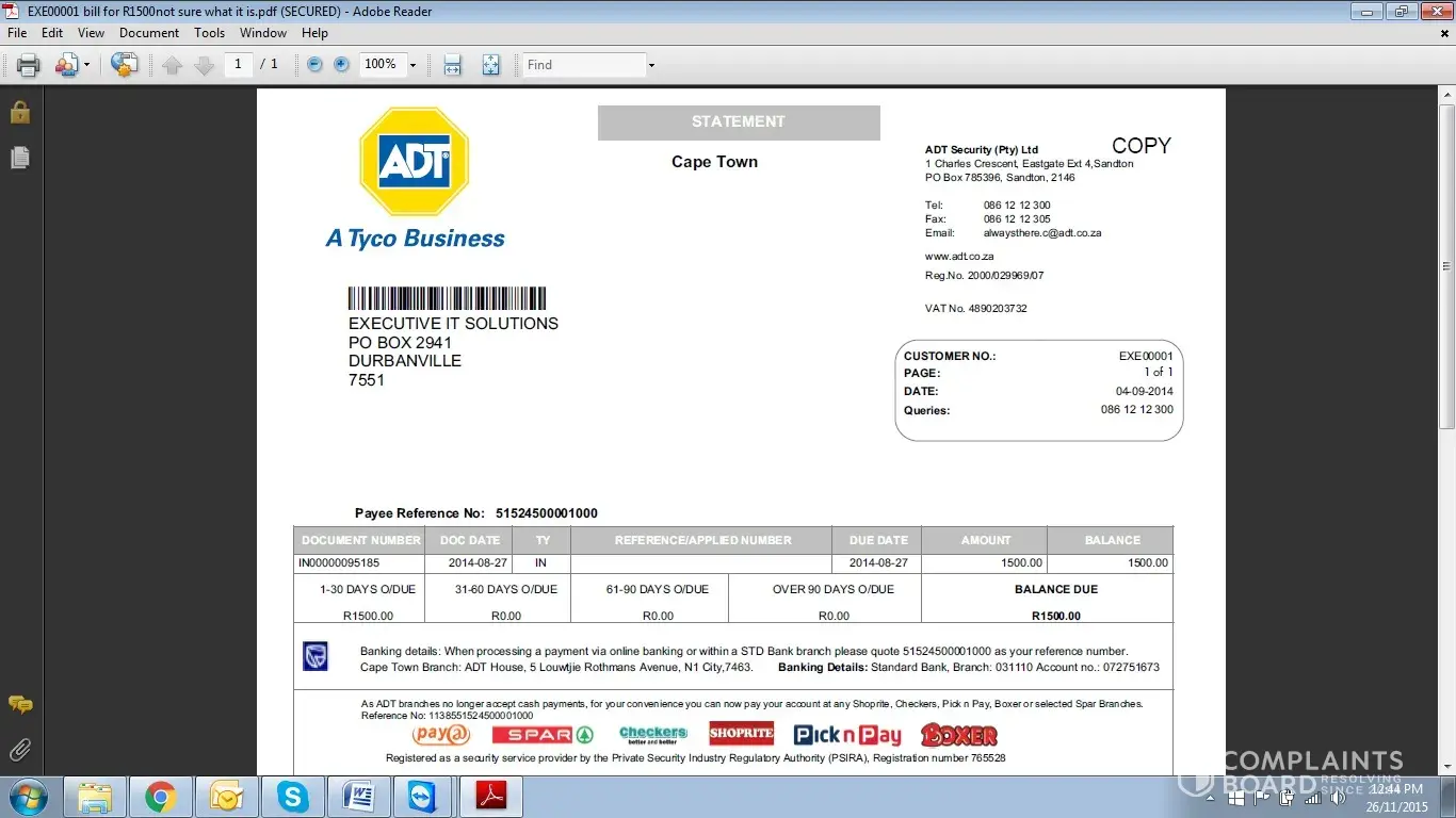 I have not been a client of ADT acc no;(EXE00001) for at least a year and a half. About 4 months ago i started getting SMS's saying that I have been handed over to a debt collecting company. I contacted the company regarding the collection and they could not give me any information or provide documentation why I owe the money as per ADT. I have requested via email, sms and phone calls to send me the relevant documentation so that we can resolve this matter. When I contact the debt collecting company they inform me that they have requested the documentation and as to date has not received any from ADT. I then tried to get the invoices directly from ADT but they could not provide me with the documentation as well and pass me back to the debt collecting company. The debt collecting company threatens me to black list me should i not pay! I informed them I can not pay should I have no documents and they can not proceed with legal action until this has been resolved.