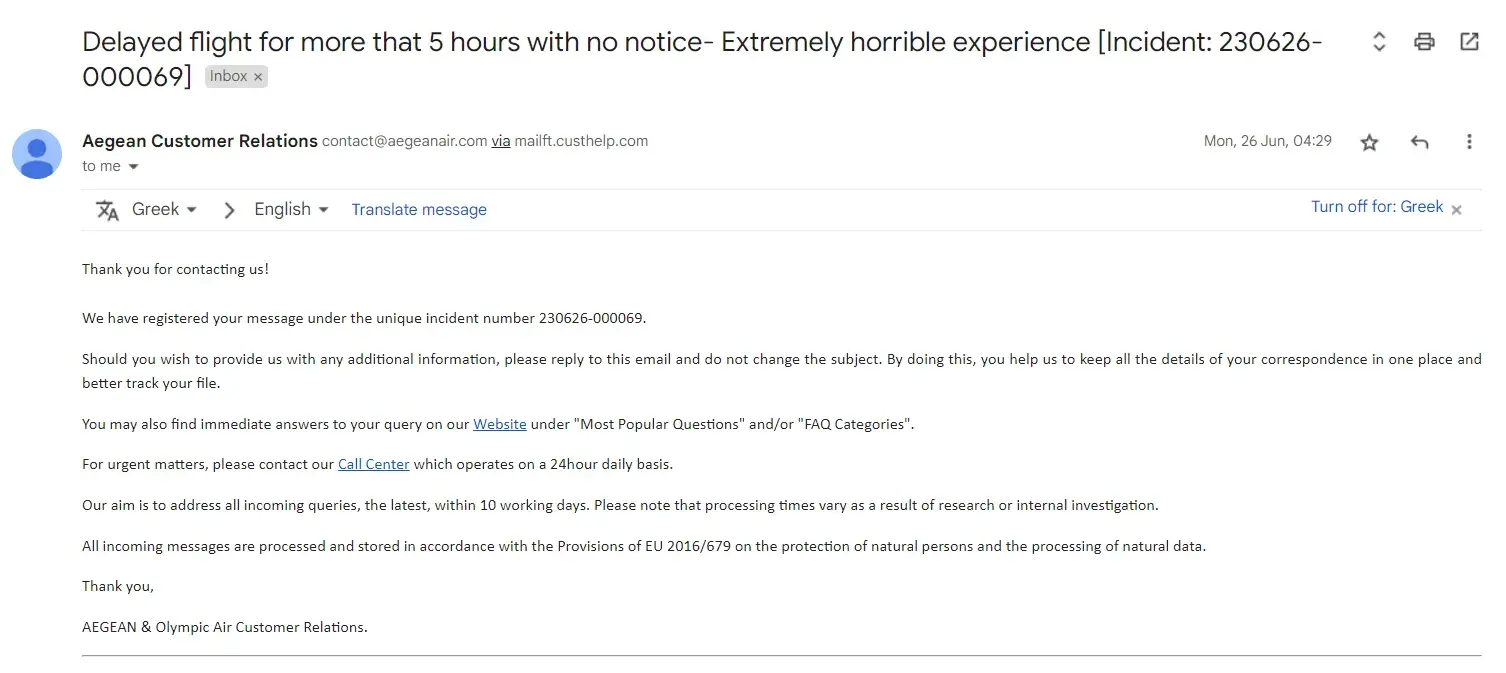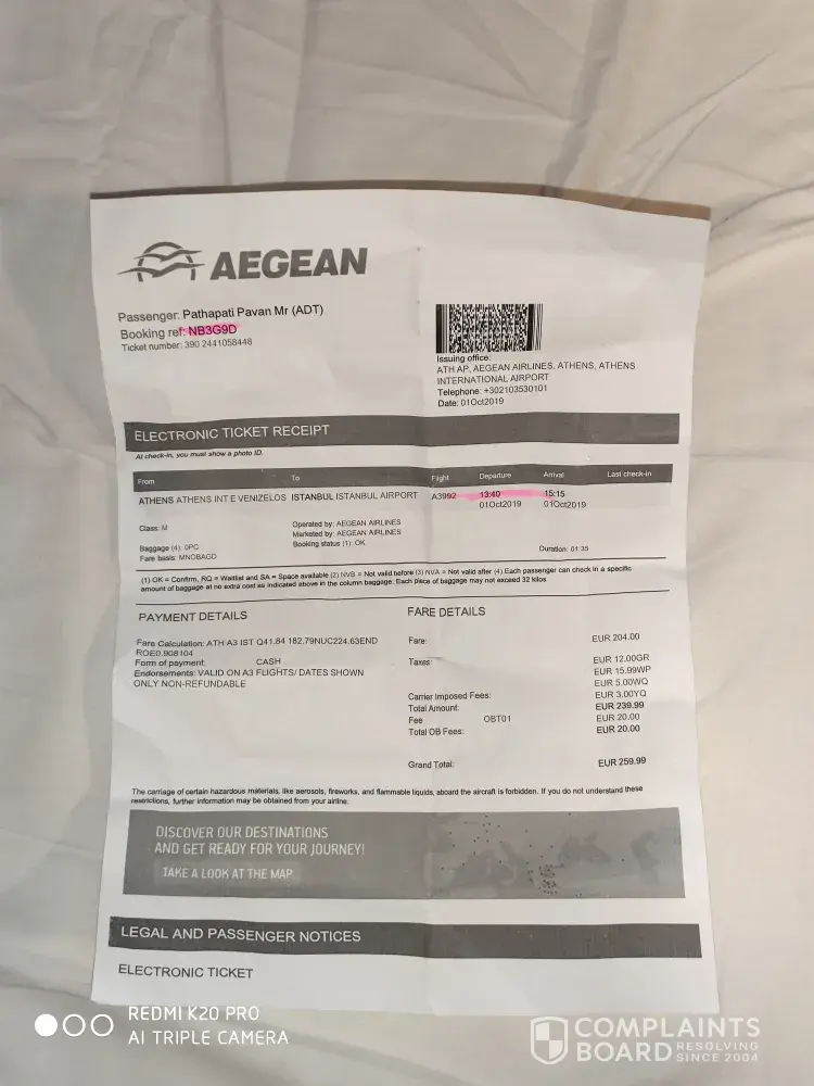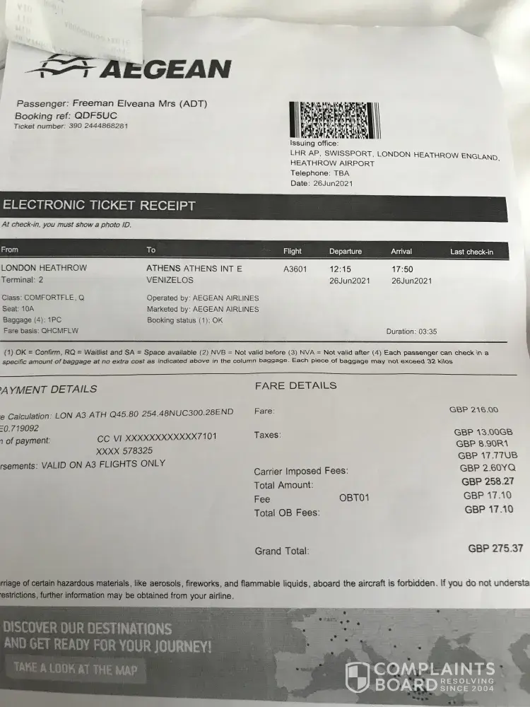 Read full complaint53 Aegean Airlines Complaints