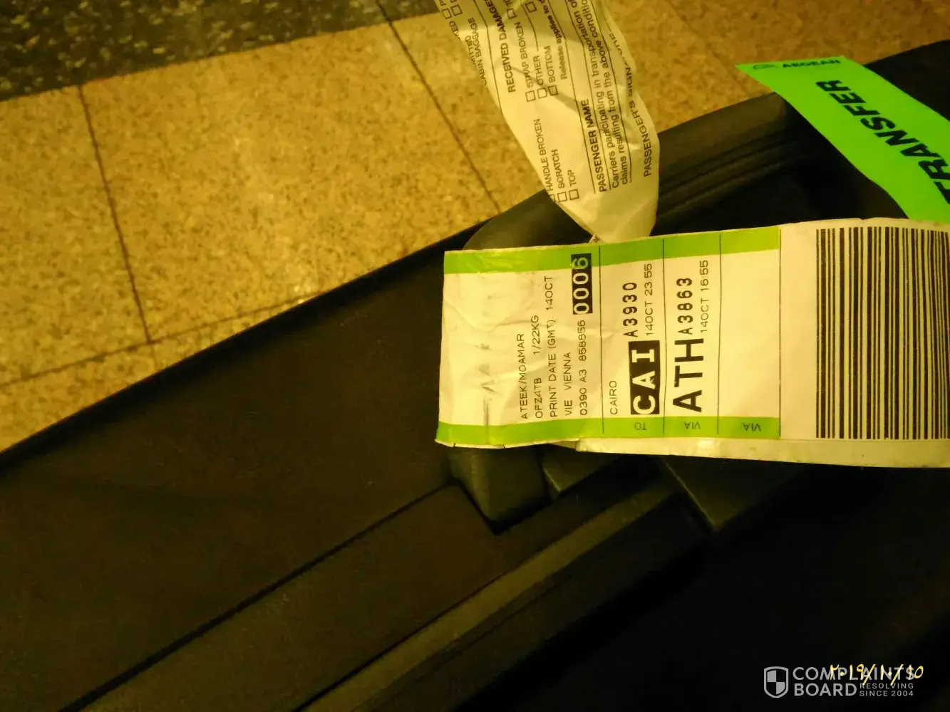 The connecting flight number was A3930, from Athens to Cairo.