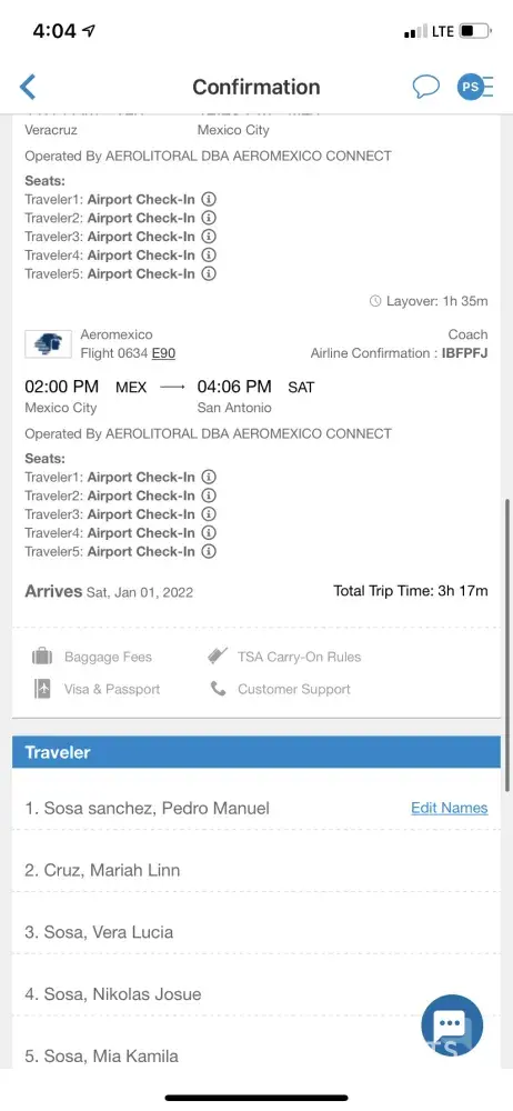 At this point, we are very disappointed with the customer service and the system of Aeromexico for constantly failing what other airlines can do in 3 minutes on the website.