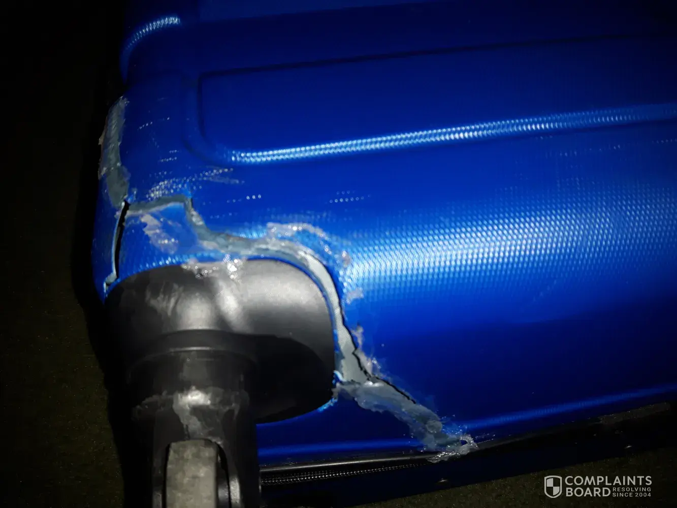 I am attaching photos of the damage and respectfully request to be reimbursed for the cost to replace our luggage at an approximate cost of $250.00 or a credit towards future travel.
