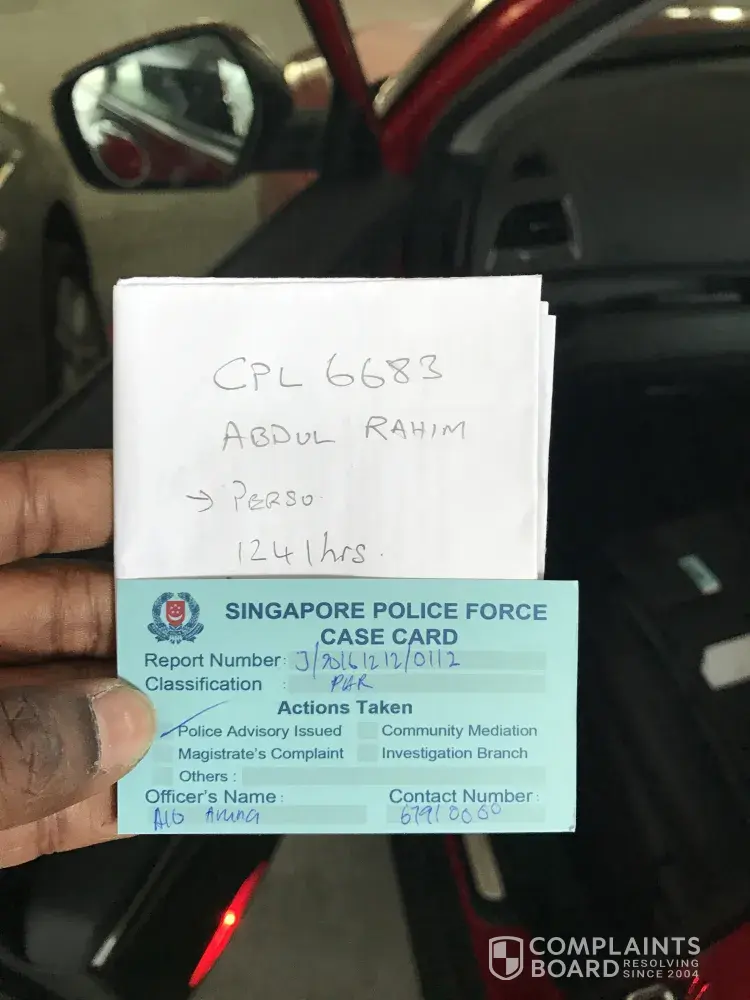Upon reaching my car i saw two spf officer at the junction and i ask the spf to assist me and i report about the incident and left the place with the case card given to me, i also made an complaint and feed back to ica department about the officers