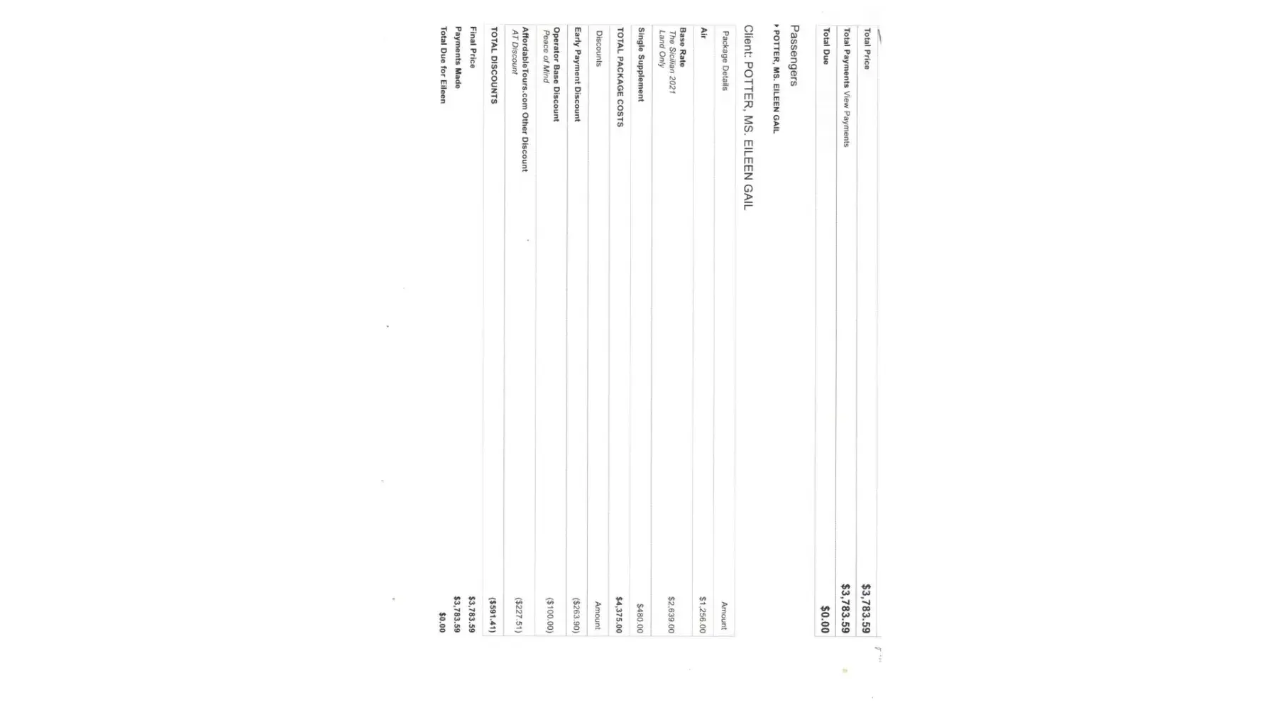 In June 2022, I was advised, in writing, that my tour to Sicily was fully paid for. Now I have received another email dated 10/21/21 that I now owe an additional $550. Yes, the dates are correct. Apparently, globus is telling trena, the travel agent at affordable tours, doesn't have a clue. This is a trip of my lifetime, meeting with my childhood friend of 6 to 6 years and her family.