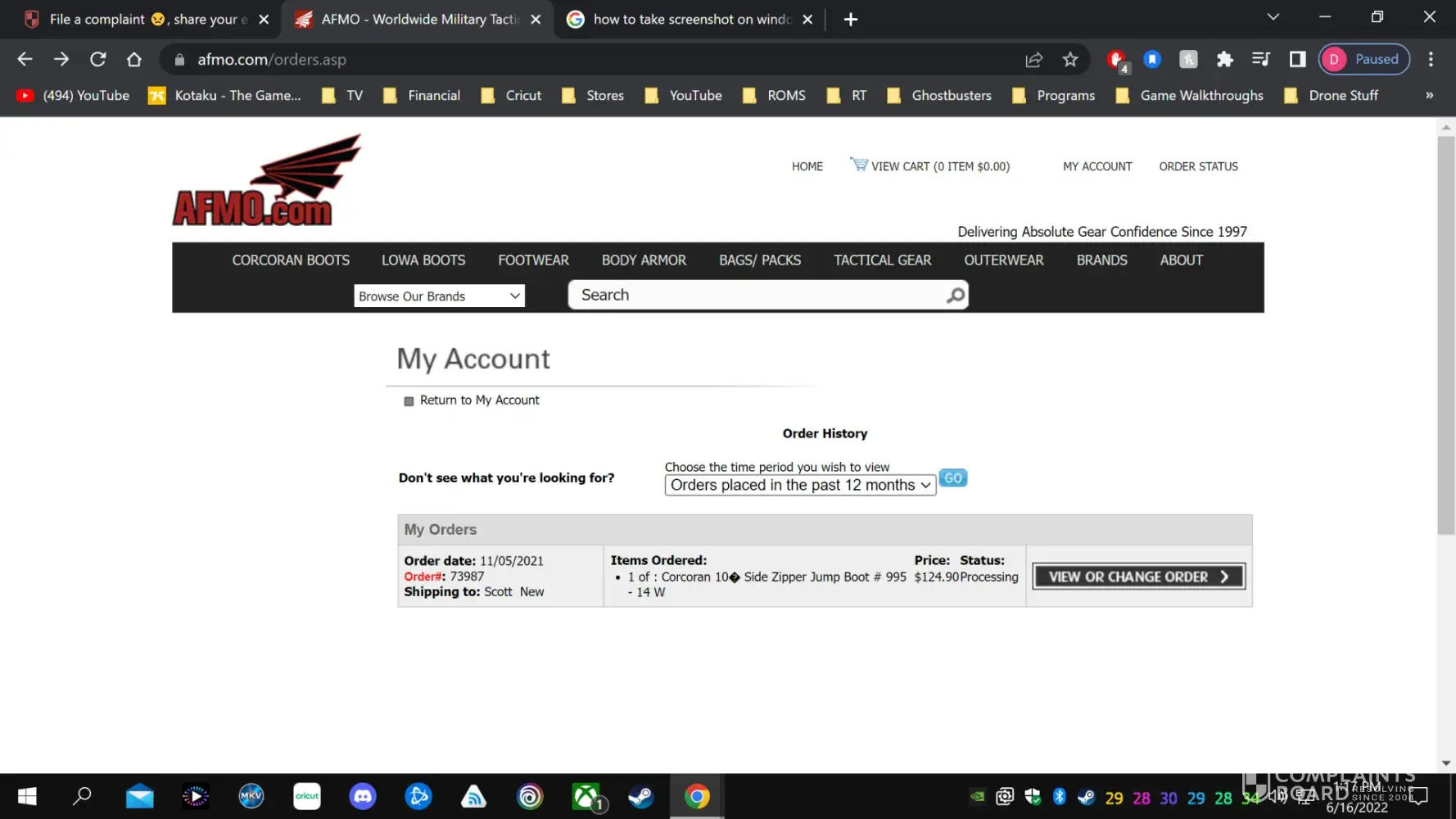 Afmo.com Order not received from AFMO.