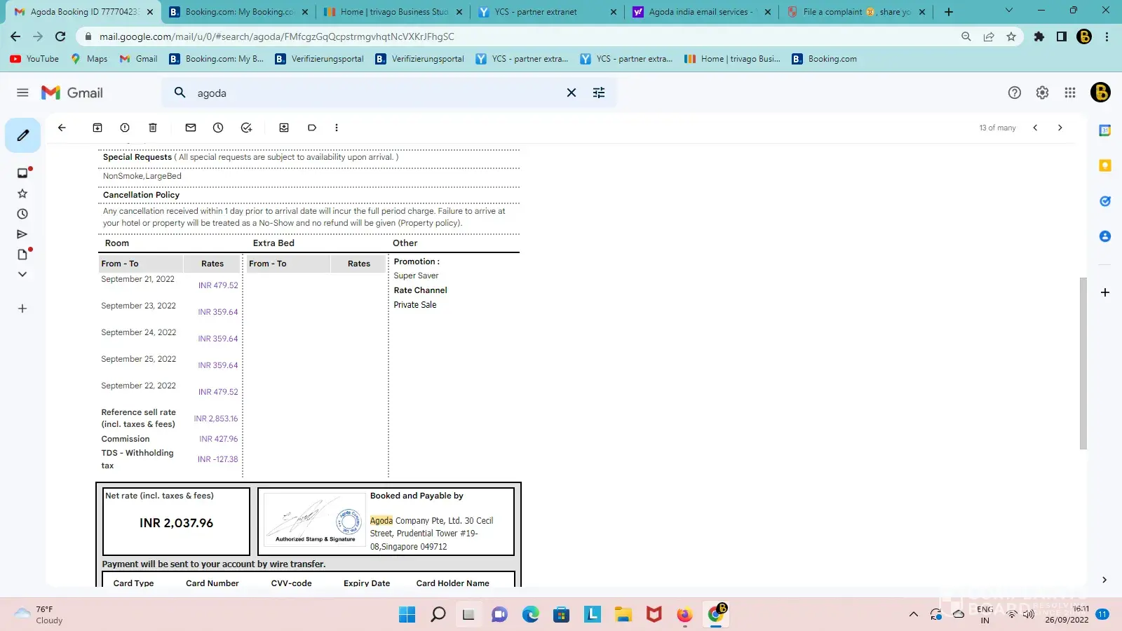 I booked for 2 standard rooms for December 26 to 29, 2022 for 3 persons through AGODA, under the my name: Valeriano E. Magumun. I paid through credit card (see confirmation email of payment).