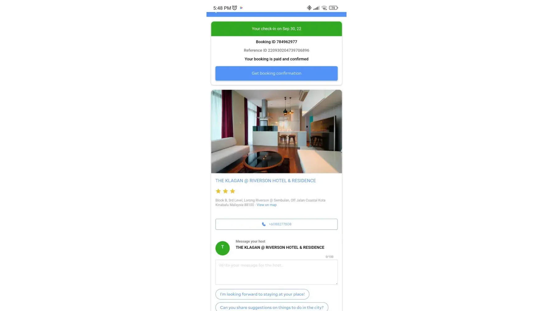 Booking ID # [protected] Check-in Saturday, 17 September 2022