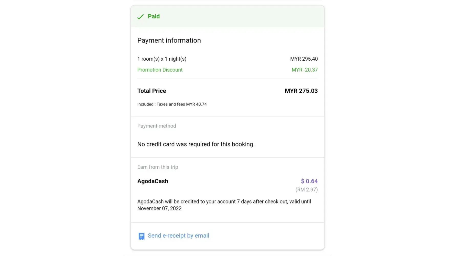 Made booking via Agoda for one night stay at OYO 900600 61, Gua Musang, Kelantan 6th October 2022 and confirmed email received from Agoda. Confirmed id booking [protected].