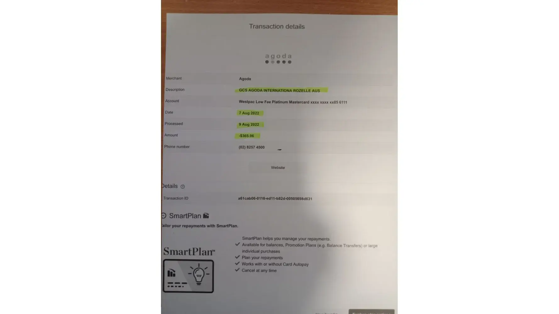 In the midst of making several reservations with Agoda for Jan/Feb2023 holiday, my credit card was fraudulently charged by another similarly named company GCS AGODA INTERNATIONA (sic) ROZELLE AUS to the sum of AUD365.96