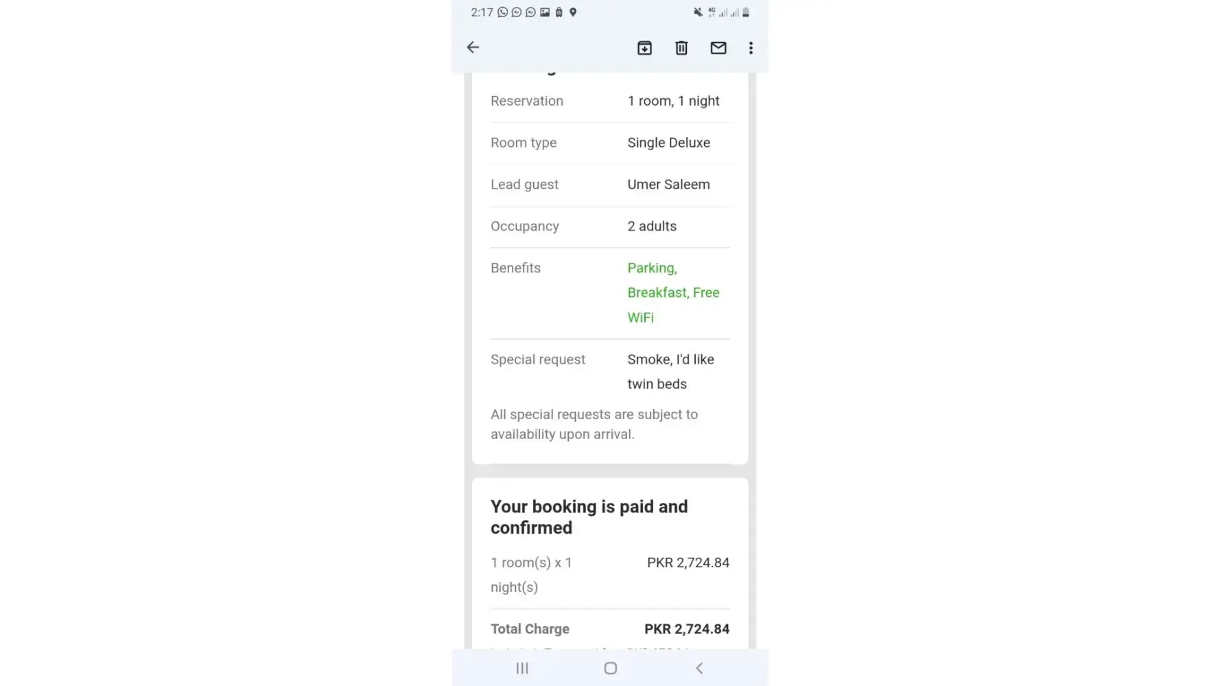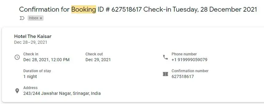 Booking Confirmation mail details attached below