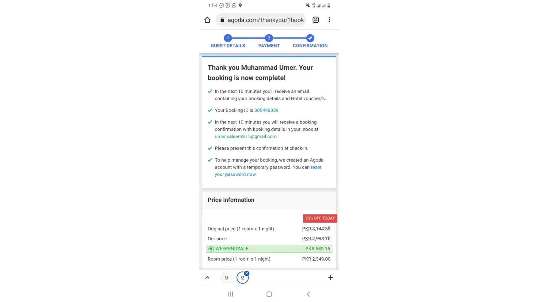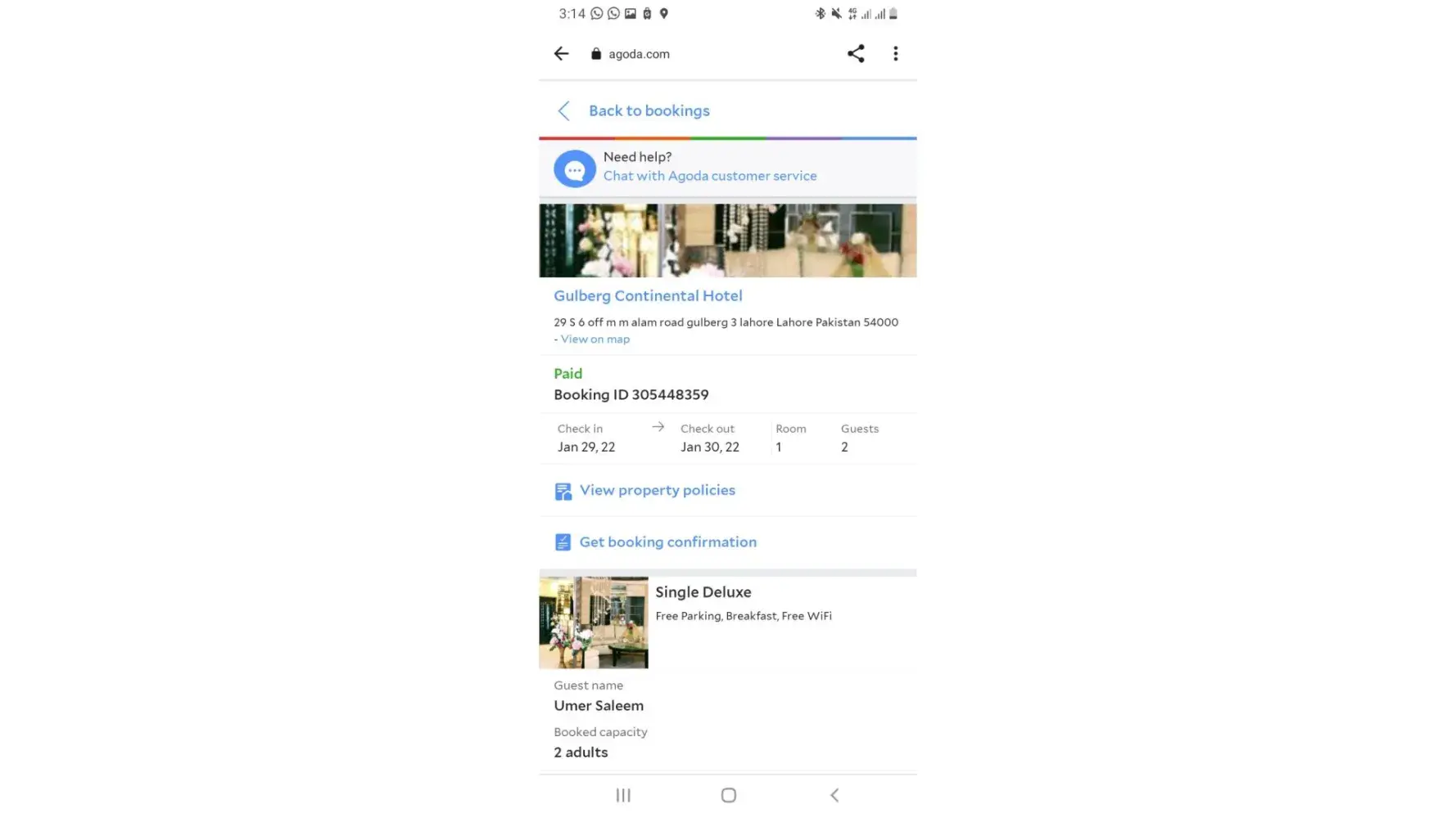 Original Agoda Booking: Agoda Booking ID [protected]