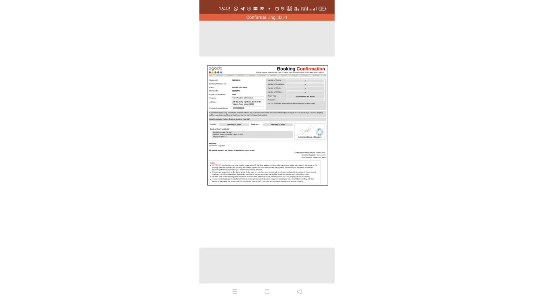 Agoda Booking ID [protected] Check-in February 10