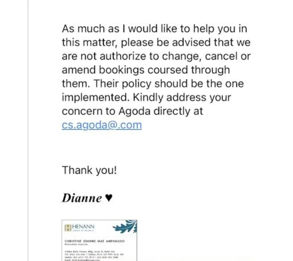 Much appreciate if Agoda team can assist me in this matter and refund. I can be contacted at [protected]