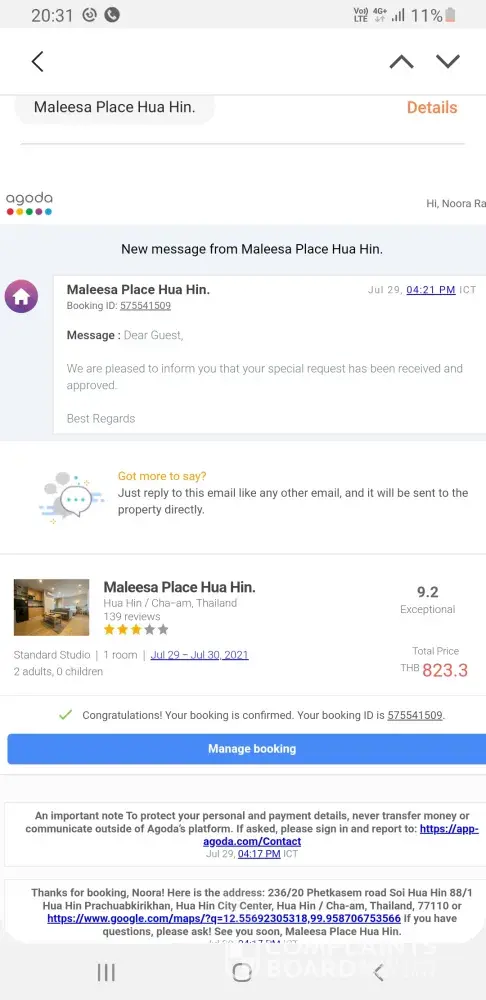 Ive attached screen shot from my girlfriends mobile and my mobile phone with my booking and room pictures from agoda.