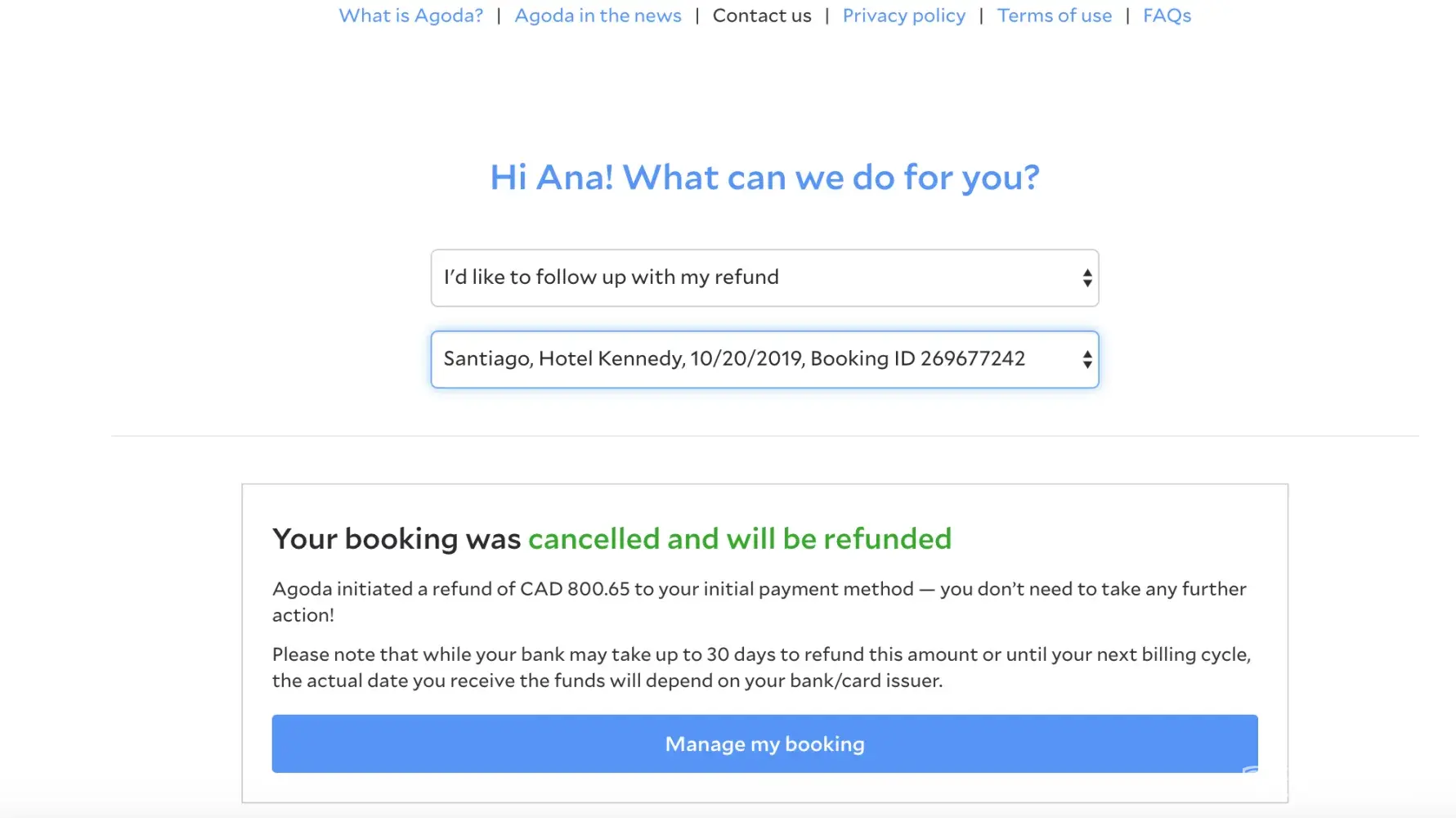 - Their own webpage indicated that Agoda would refund me, and when inquired specifically for this case.