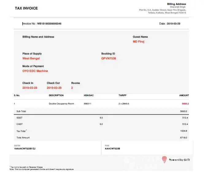 I booked online for OYO 5879 Radha Damodar Residency for June 22, 2019 Departure: June 23, 2019, they informed that