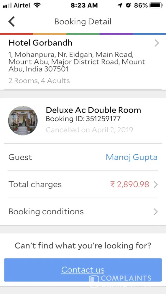 Note:- Booking ID [protected] & Check-in March 28, 2019