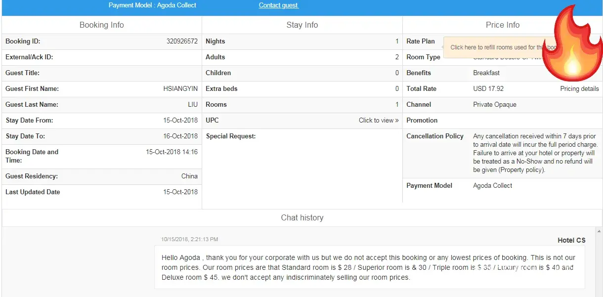 But they still provide the standard reply as point 1. a loop between the Agoda and the customer.