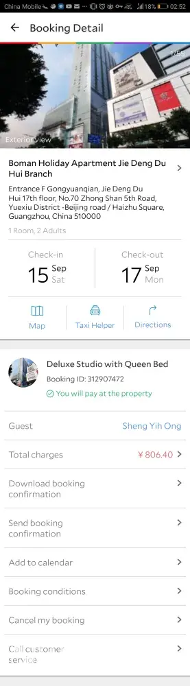I recently booked through your website to book accommodation on 6/8/18 in Singapore.