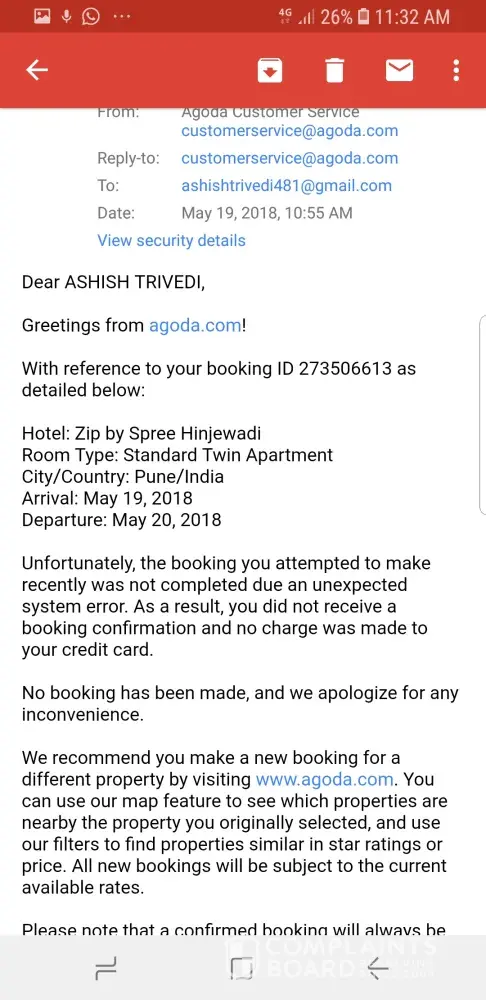 I hope Agoda management can take a attention and act on my complaint and give the feedback asap.