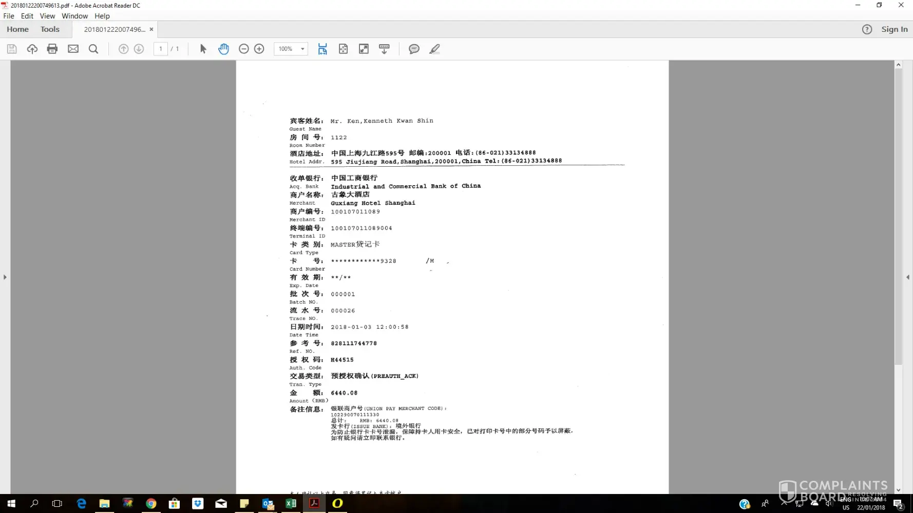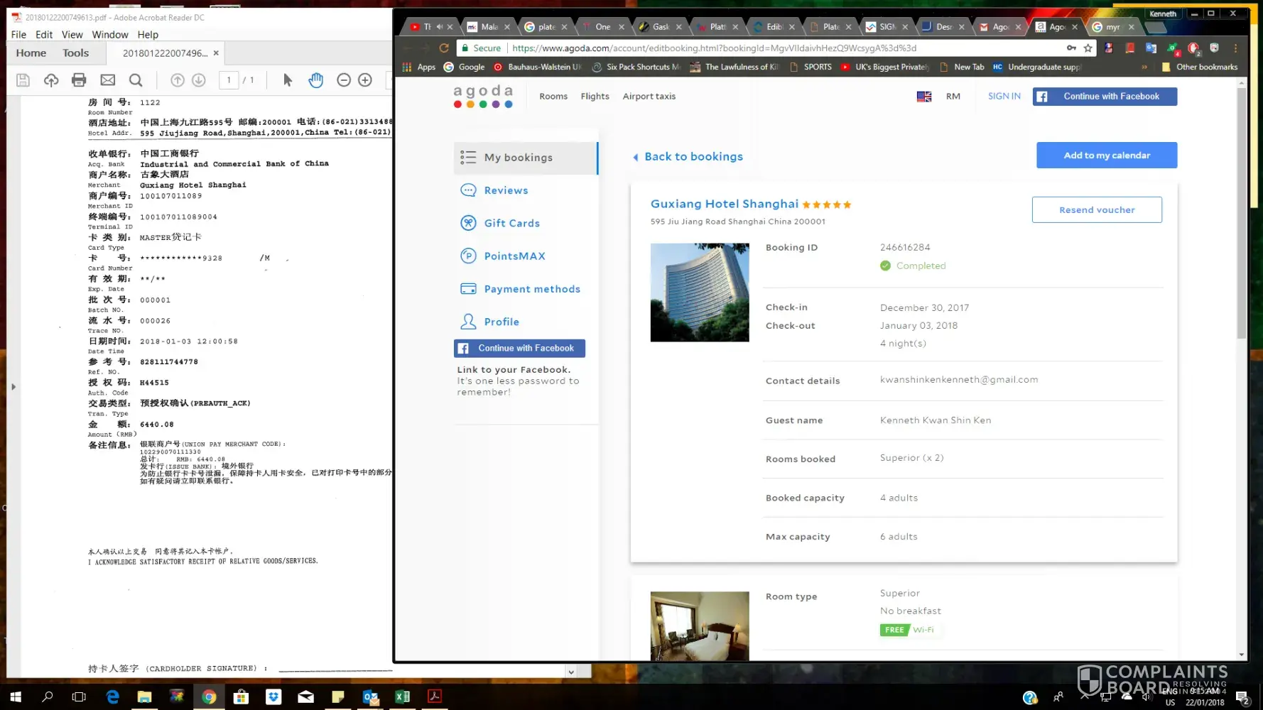 I had previously made a booking for two rooms at Guxiang Hotel Shanghai. Our booking ID is [protected]. My family and I checked in on the 30th December 2017 for a 4 night stay. The initial price quoted to me by agoda was CNY5600, however upon payment at the property, I was charged CNY6440.08 (please refer to photos attached). I would like to know why there was such a drastic jump in pricing between the price promised by agoda and the final charged price. Hoping to hear from them regarding the matter and a resolution for the matter.